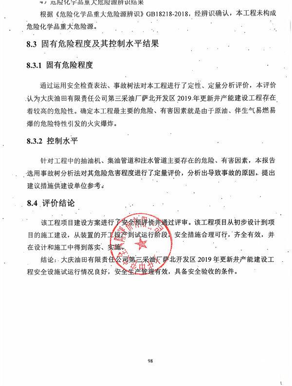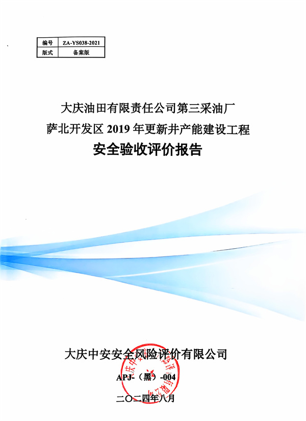 大慶油田有限責任公司第三采油廠薩北開發區2019年更新井產能建設工程安全驗收評價報告 |