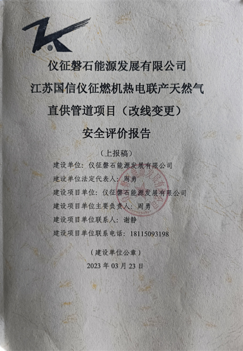 儀征磐石能源發(fā)展有限公司江蘇國信儀征燃機(jī)熱電聯(lián)產(chǎn)天然氣直供管道項(xiàng)目(改線變更)安全評價(jià)報(bào)告 |