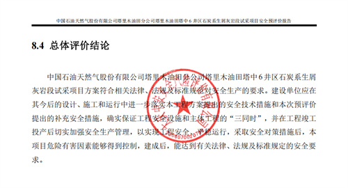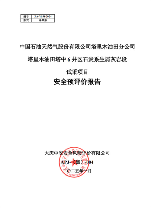 中國石油天然氣股份有限公司塔里木油田分公司塔里木油田塔中6井區(qū)石炭系生屑灰?guī)r段試采項目安全預評價報告