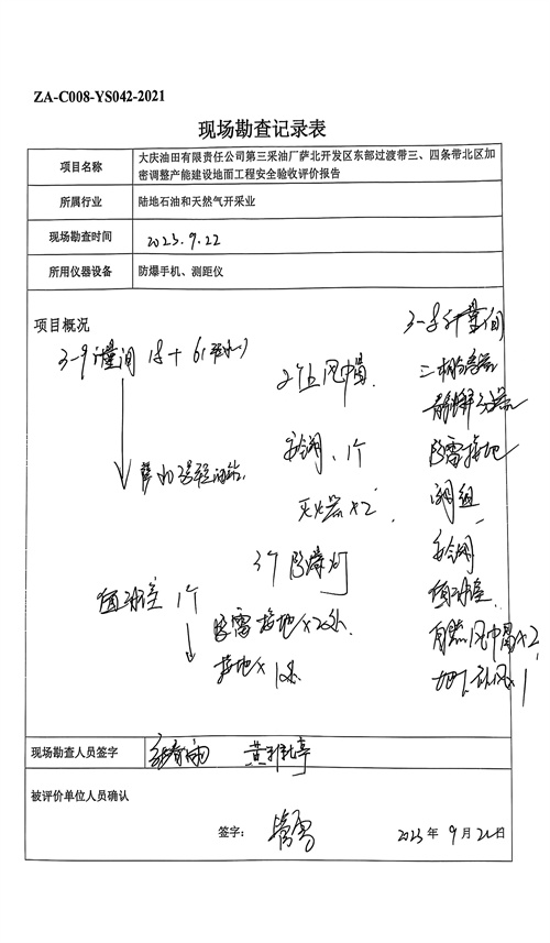大慶油田有限責任公司第三采油廠薩北開發區東部過渡帶三、四條帶北區加密調整產能建設地面工程安全驗收評價報告 |