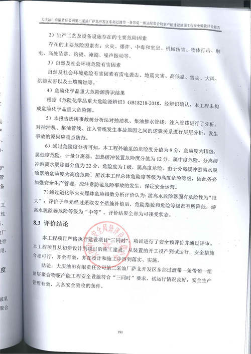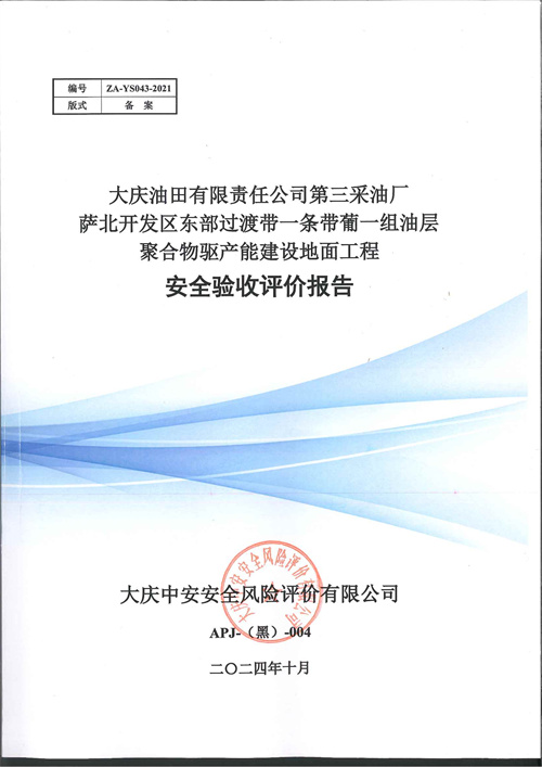 大慶油田有限責(zé)任公司第三采油廠薩北開(kāi)發(fā)區(qū)東部過(guò)渡帶一條帶葡一組油層聚合物驅(qū)產(chǎn)能建設(shè)地面工程安全驗(yàn)收評(píng)價(jià)報(bào)告 |