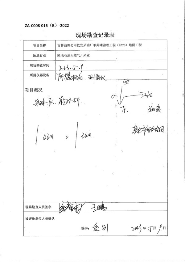 吉林油田單井罐治理工程(2023年)乾安采油廠地面工程補充方案 安全預評價 |