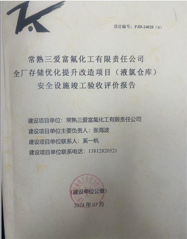 常熟三愛富氟化工有限責任公司全廠存儲優化提升改造項目(液氯倉庫)安全設施竣工驗收評價報告