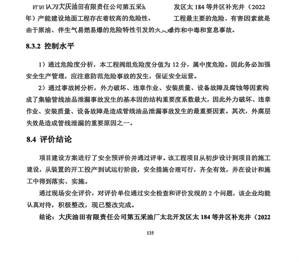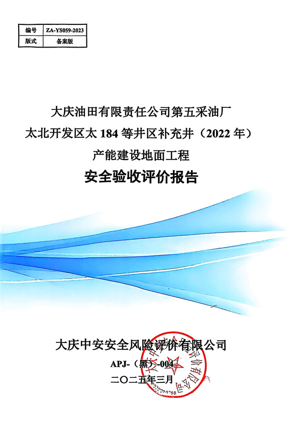 大慶油田有限責任公司第五采油廠太北開發區太184等井區補充井(2022年)產能建設地面工程安全驗收評價報告 |