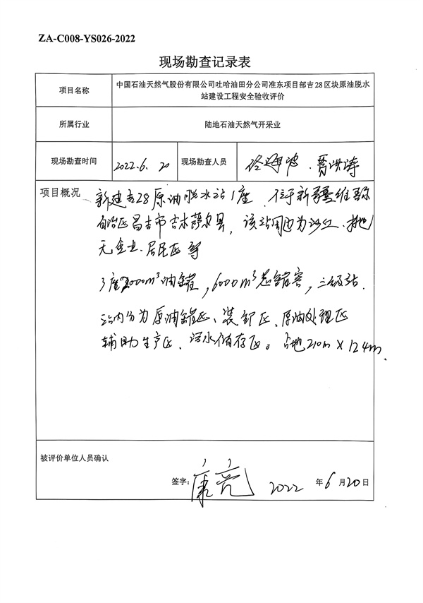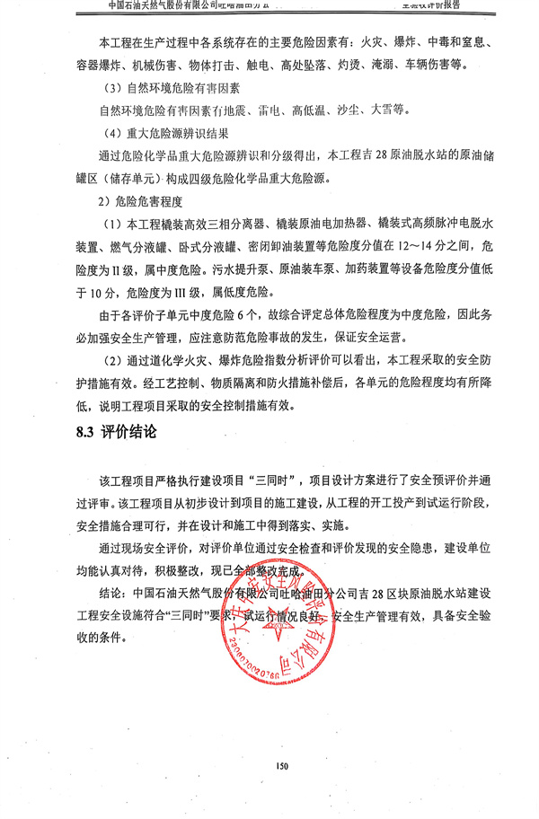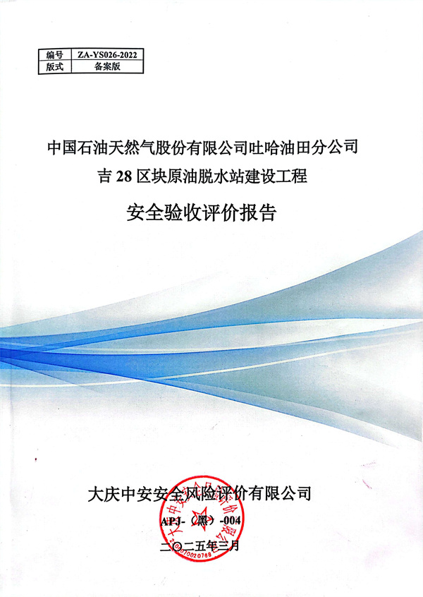 中國石油天然氣股份有限公司吐哈油田分公司吉28區(qū)塊原油脫水站建設(shè)工程安全驗收評價報告