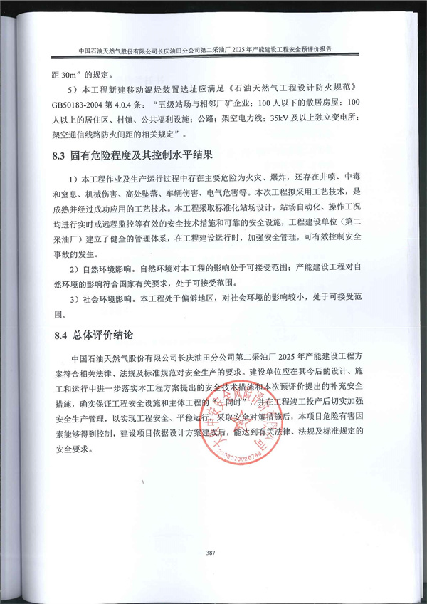 中國石油天然氣股份有限公司長(zhǎng)慶油田分公司第二采油廠2025年產(chǎn)能建設(shè)工程安全預(yù)評(píng)價(jià)報(bào)告 |