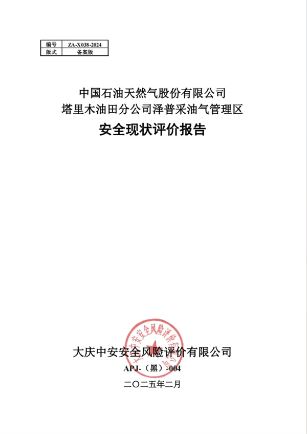 中國石油天然氣股份有限公司塔里木油田分公司澤普采油氣管理區安全現狀評價報告