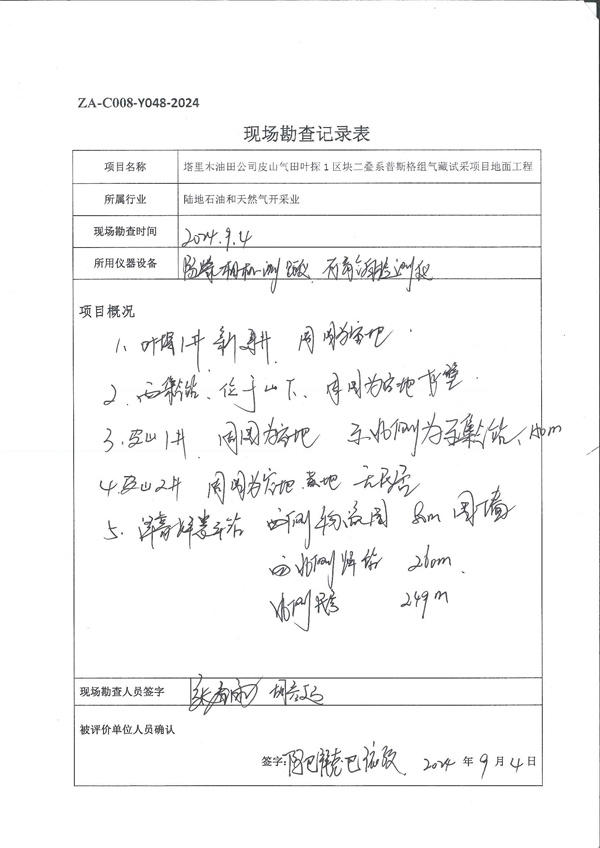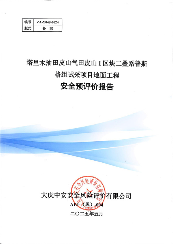 塔里木油田皮山氣田皮山1區(qū)塊二疊系普斯格組試采項目地面工程安全預評價報告