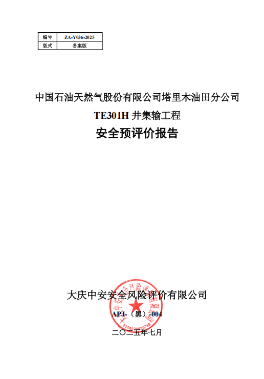 中國(guó)石油天然氣股份有限公司塔里木油田分公司TE301H井集輸工程安全預(yù)評(píng)價(jià)報(bào)告