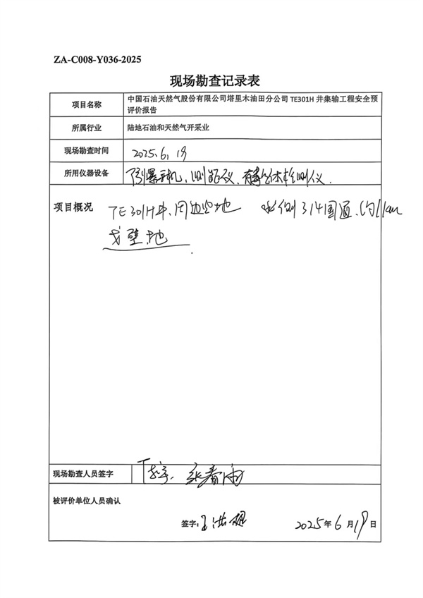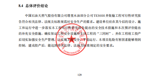 中國(guó)石油天然氣股份有限公司塔里木油田分公司TE301H井集輸工程安全預(yù)評(píng)價(jià)報(bào)告 |