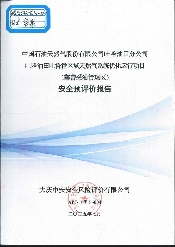 中國(guó)石油天然氣股份有限公司吐哈油田分公司吐哈油田吐魯番區(qū)域天然氣系統(tǒng)優(yōu)化運(yùn)行項(xiàng)目(鄯善采油管理區(qū))安全預(yù)評(píng)價(jià) |