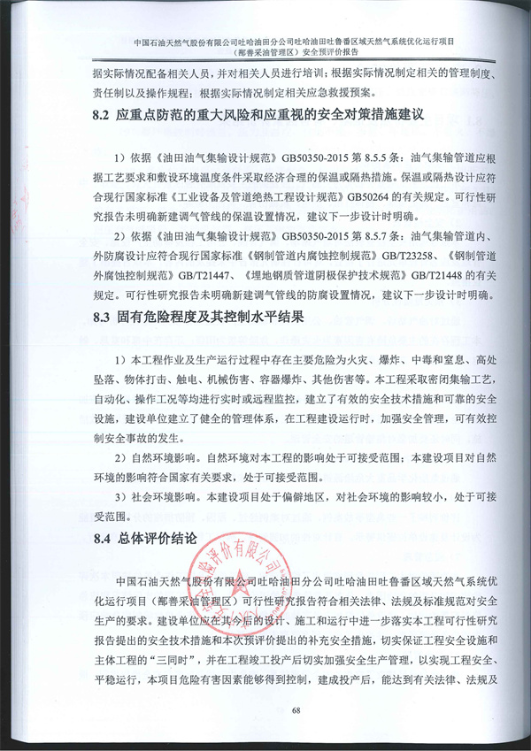 中國(guó)石油天然氣股份有限公司吐哈油田分公司吐哈油田吐魯番區(qū)域天然氣系統(tǒng)優(yōu)化運(yùn)行項(xiàng)目(鄯善采油管理區(qū))安全預(yù)評(píng)價(jià)報(bào)告