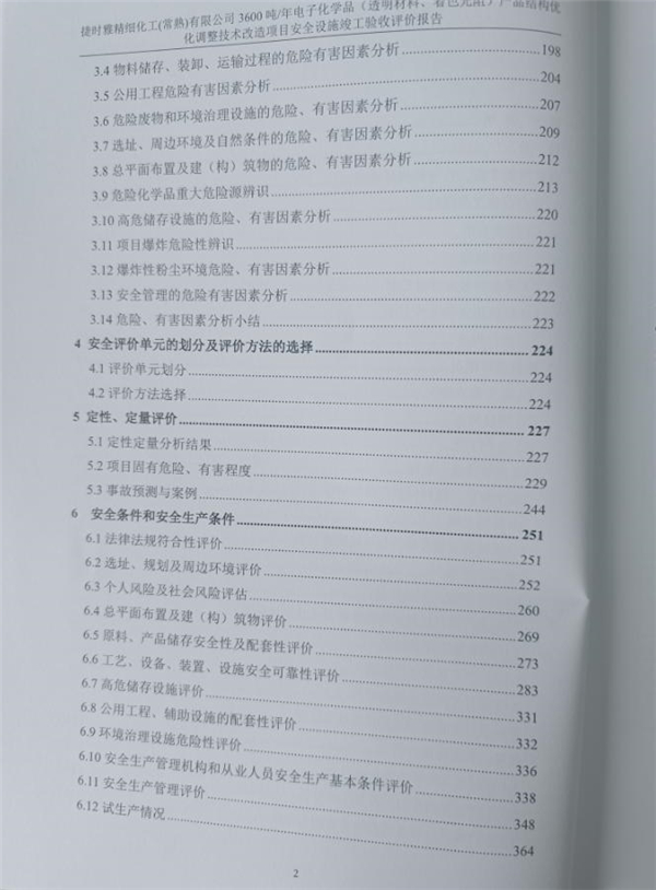 根據評價報告結論以及安全生產條件評價表檢查,捷時雅精細化工(常熟)有限公司3600噸/年電子化學品(透明材料、著色光阻)產品結構優化調整技術改造項目符合安全生產條件,具備安全設施竣工驗收條件。 |