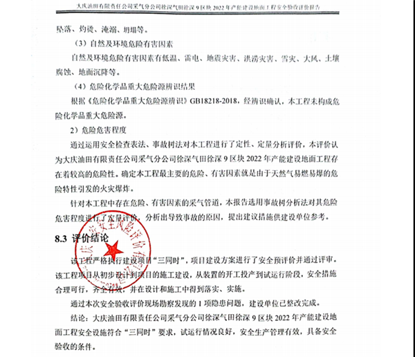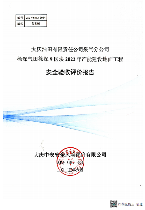 大慶油田有限責(zé)任公司采氣分公司徐深氣田徐深9區(qū)塊2022年產(chǎn)能建設(shè)地面工程安全驗(yàn)收評(píng)價(jià)報(bào)告