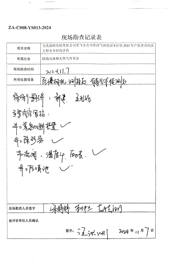 大慶油田有限責(zé)任公司采氣分公司徐深氣田徐深9區(qū)塊2022年產(chǎn)能建設(shè)地面工程安全驗(yàn)收評(píng)價(jià)報(bào)告 |