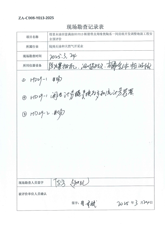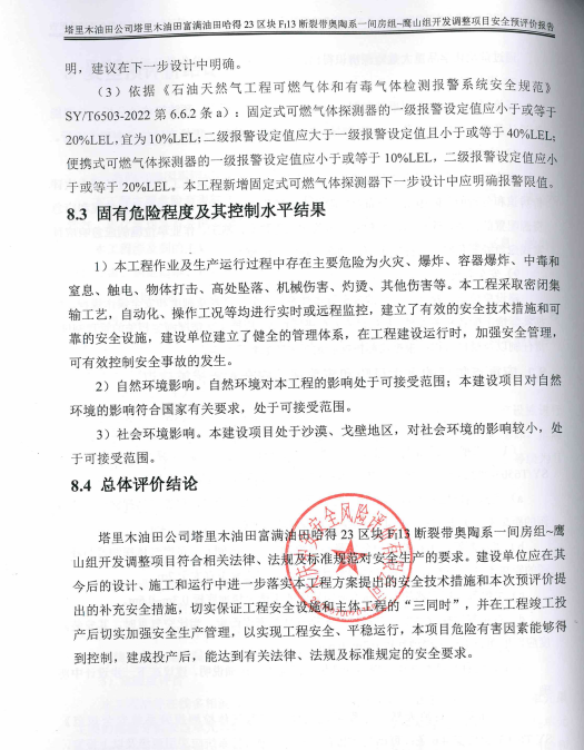 塔里木油田公司塔里木油田富滿油田哈得23區(qū)塊FI13斷裂帶奧陶系一間房組~鷹山組開發(fā)調(diào)整項目安全預(yù)評價報告