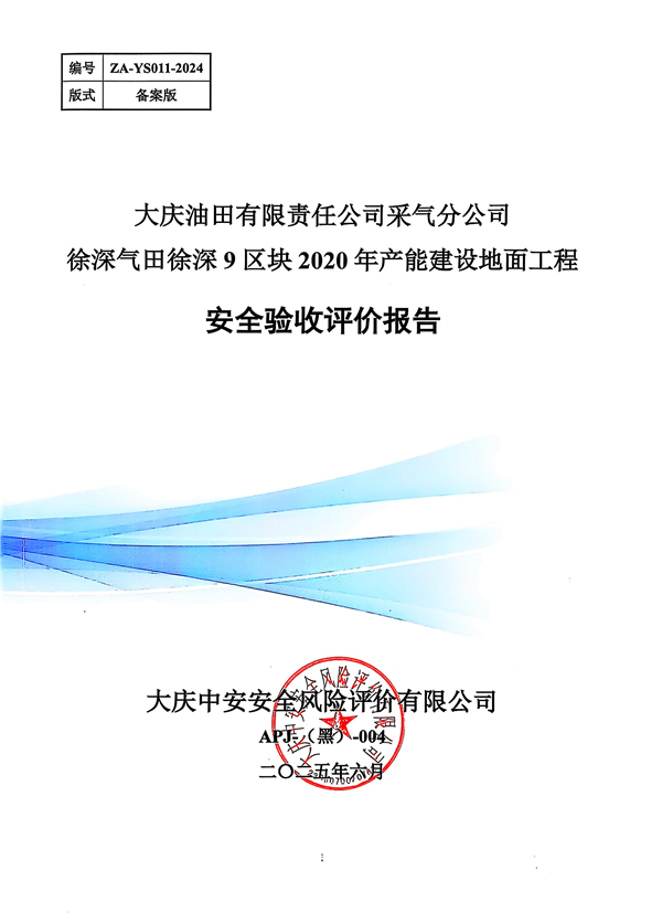 大慶油田有限責(zé)任公司采氣分公司徐深氣田徐深9區(qū)塊2020年產(chǎn)能建設(shè)地面工程安全驗(yàn)收評價(jià)報(bào)告