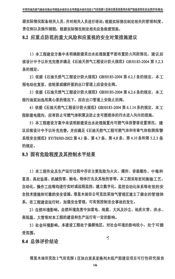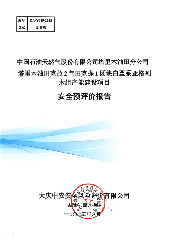 中國石油天然氣股份有限公司塔里木油田分公司塔里木油田克拉2氣田克探1區(qū)塊白堊系亞格列木組產(chǎn)能建設(shè)項目安全預(yù)評價