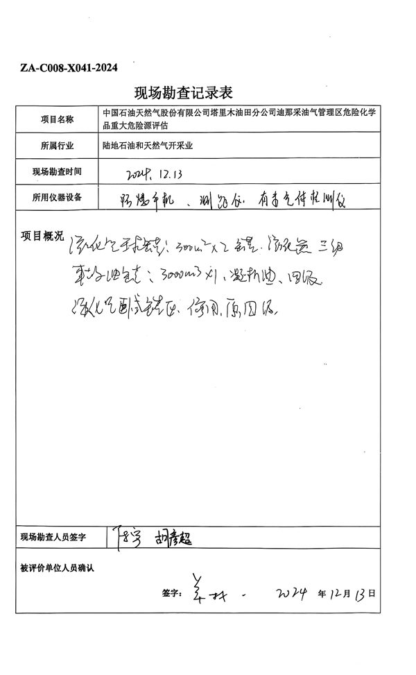 中國石油天然氣股份有限公司塔里木油田分公司迪那采油氣管理區迪那處理站、牙哈處理站、迪那處理站(站外系統)、牙哈處理站(站外系統)危險化學品重大危險源的辨識與分級、安全設施、安全管理、應急救援、事故預防和控制措施實施狀況等。 |