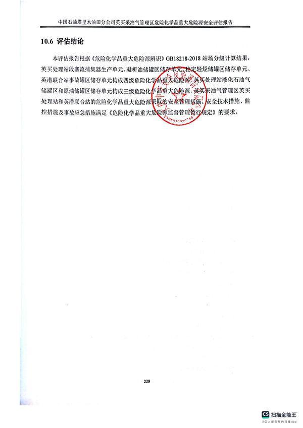 中國石油天然氣股份有限公司塔里木油田分公司英買采油氣管理區(qū) 危險化學品重大危險源安全評估報告 |