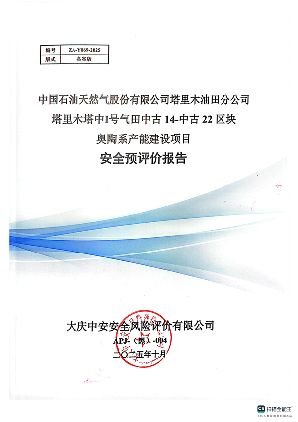 中國石油天然氣股份有限公司塔里木油田分公司塔里木塔中Ⅰ號氣田中古14-中古22區塊奧陶系產能建設項目安全預評價報告 |