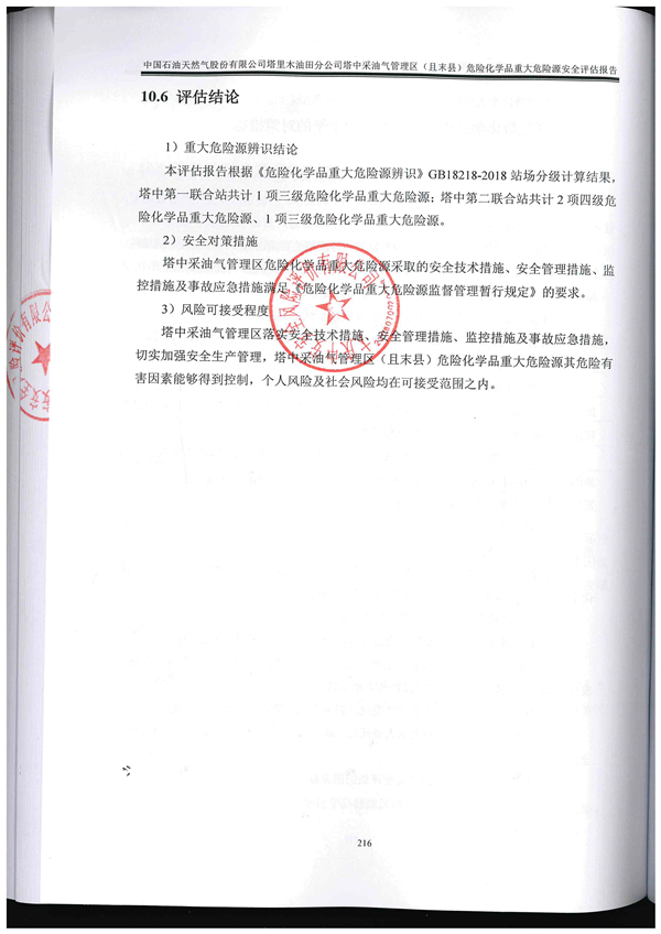 中國石油天然氣股份有限公司塔里木油田分公司塔中采油氣管理區危險化學品重大危險源評估報告 |