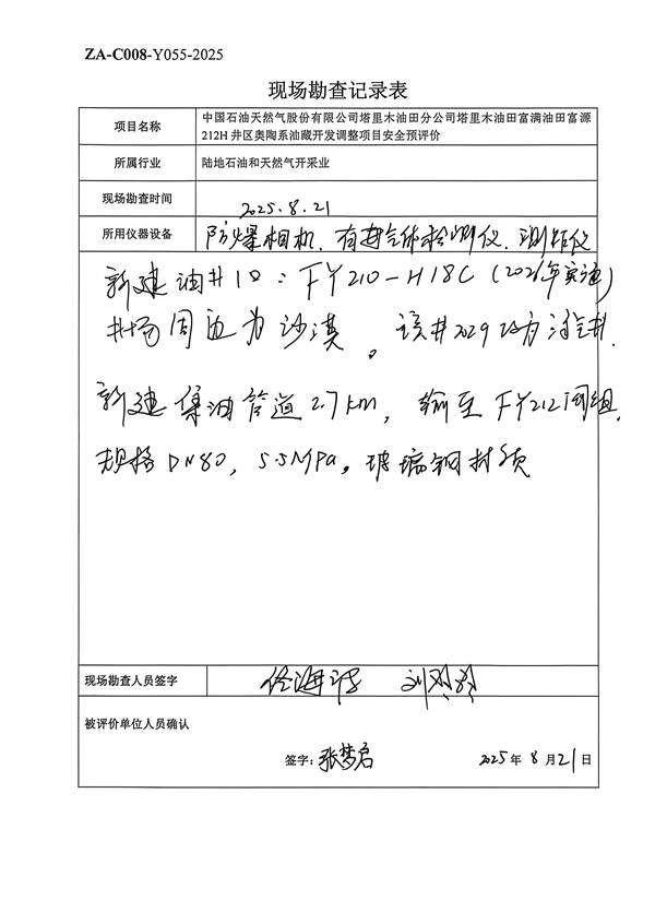 中國石油天然氣股份有限公司塔里木油田分公司塔里木油田富滿油田富源212H井區(qū)奧陶系一間房組-鷹山組產(chǎn)能建設(shè)項(xiàng)目安全預(yù)評價報(bào)告