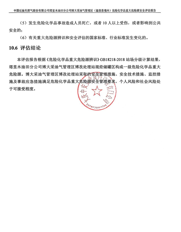 中國石油天然氣股份有限公司塔里木油田分公司博大采油氣管理區(qū)危險化學(xué)品重大危險源評估報告