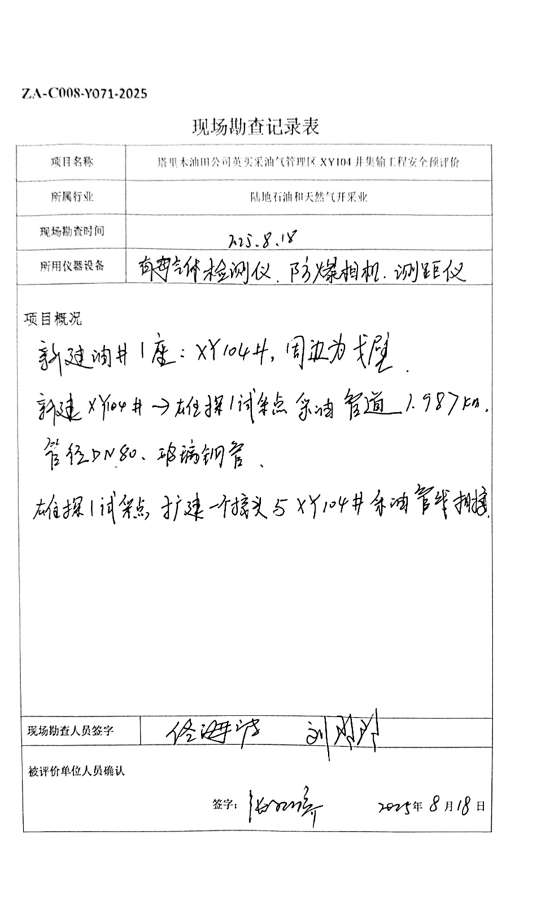 塔里木油田公司英買采油氣管理區XY104井集輸工程安全預評價報告