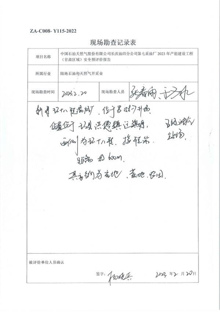 中國石油天然氣股份有限公司長慶油田分公司第七采油廠2023年產能建設工程(甘肅區域)安全預評價 |