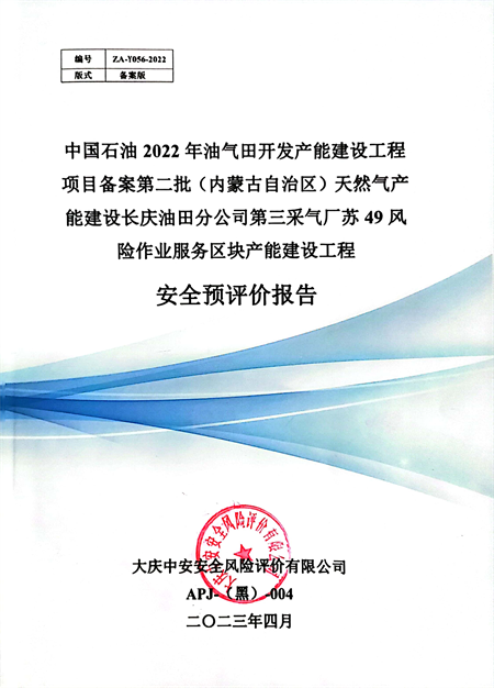 中國石油2022年油氣田開發(fā)產(chǎn)能建設工程項目備案第二批(內蒙古自治區(qū))天然氣產(chǎn)能建設長慶油田分公司第三采氣廠蘇49風險作業(yè)服務區(qū)塊產(chǎn)能建設工程安全預評價報告