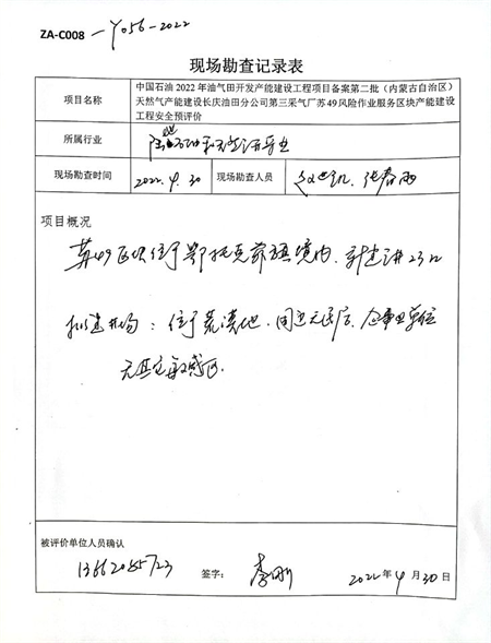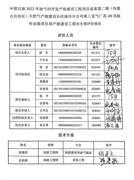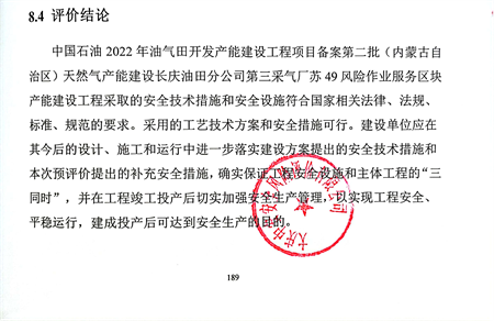 中國石油2022年油氣田開發(fā)產(chǎn)能建設工程項目備案第二批(內蒙古自治區(qū))天然氣產(chǎn)能建設長慶油田分公司第三采氣廠蘇49風險作業(yè)服務區(qū)塊產(chǎn)能建設工程采取的安全技術措施和安全設施符合國家相關法律、法規(guī)、標準、規(guī)范的要求。采用的工藝技術方案和安全措施可行。建設單位應在其今后的設計、施工和運行中進一步落實建設方案提出的安全技術措施和本次預評價提出的補充安全措施,確實保證工程安全設施和主體工程的“三同時”,并在工程竣工投產(chǎn)后切實加強安全生產(chǎn)管理,以實現(xiàn)工程安全、平穩(wěn)運行,建成投產(chǎn)后可達到安全生產(chǎn)的目的。 |
