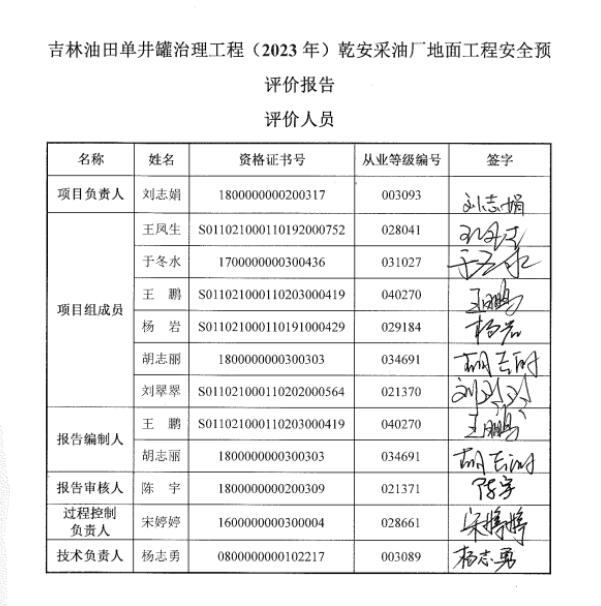 吉林油田單井罐治理工程(2023年)乾安采油廠地面工程安全評價報告