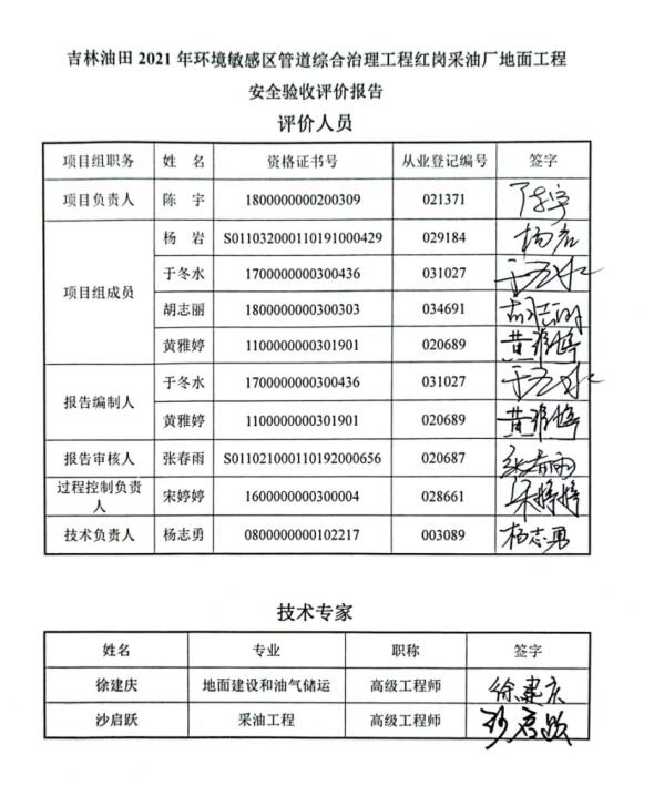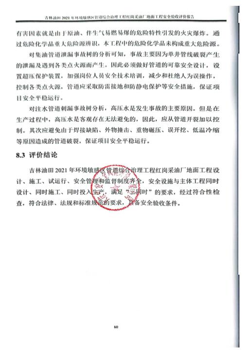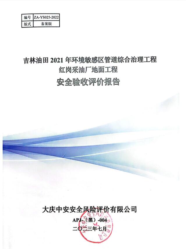 吉林油田2021年環(huán)境敏感區(qū)管道綜合治理工程紅崗采油廠地面工程 安全評價報告