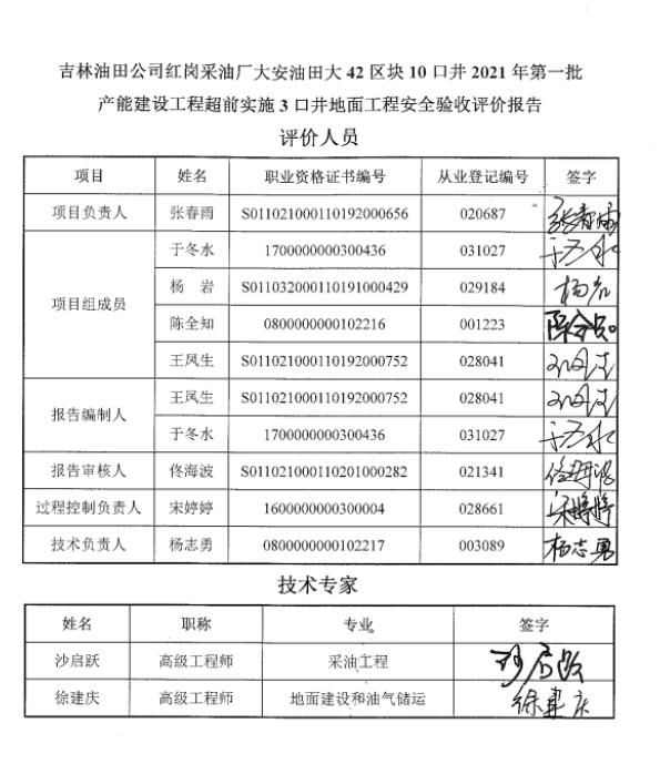 吉林油田公司紅崗采油廠大安油田大42區塊10口井2021年第一批產能建設工程超前實施3口井地面工程試運行情況良好,安全生產管理有效,評價單位認為,紅崗采油廠必須嚴格執行《建設項目安全設施“三同時”監督管理辦法》、《中華人民共和國安全生產法》等法律、法規和標準規范的要求,在對存在的安全隱患問題進行徹底整改完成后,該產能建設工程具備申請安全驗收的條件。 |