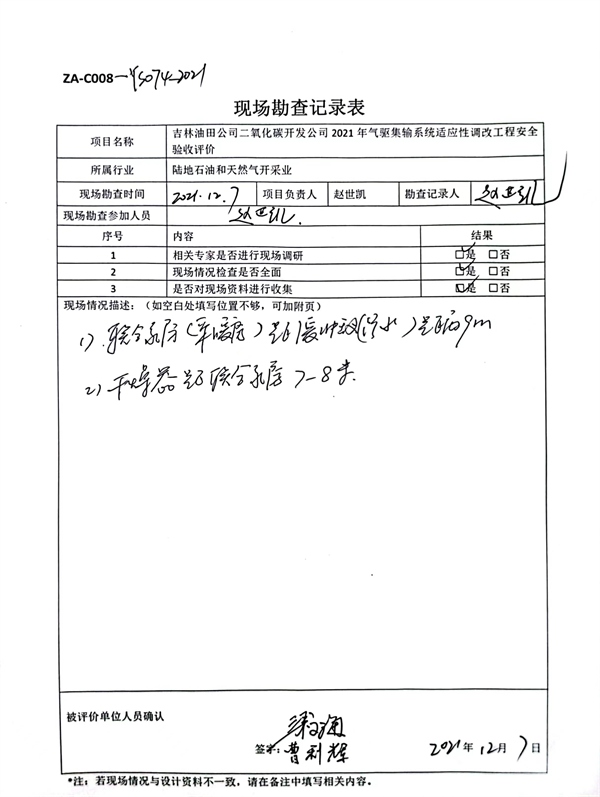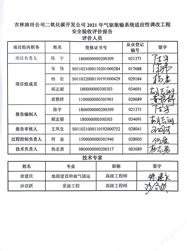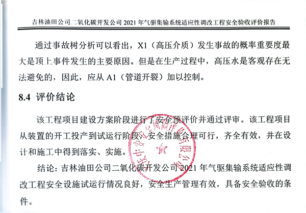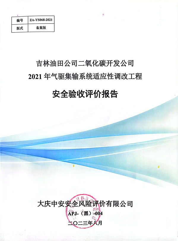 吉林油田公司二氧化碳開發(fā)公司2021年氣驅(qū)集輸系統(tǒng)適應(yīng)性調(diào)改工程安全驗(yàn)收評(píng)價(jià)