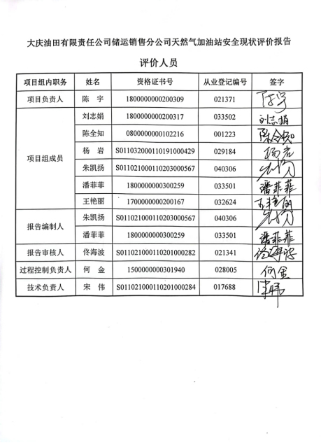 大慶油田有限責任公司儲運銷售分公司天然氣加油站安全現狀評價報告