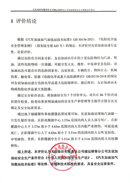 大慶油田有限責任公司儲運銷售分公司友誼加油站安全現狀評價報告 |