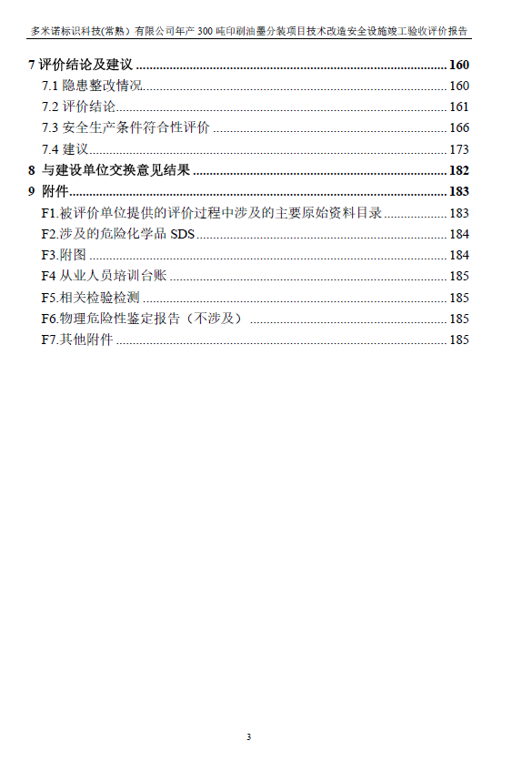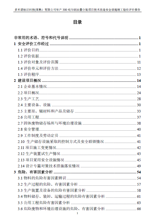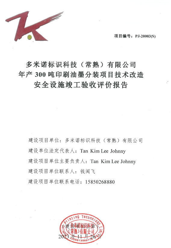 多米諾標(biāo)識科技(常熟)有限公司年產(chǎn)300噸印刷油墨分裝項(xiàng)目技術(shù)改造 安全設(shè)施竣工驗(yàn)收評價(jià)報(bào)告
