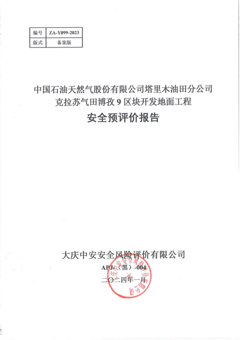 中國石油天然氣股份有限公司塔里木油田分公司克拉蘇氣田博孜9區(qū)塊開發(fā)地面工程安全預(yù)評價 |