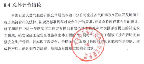 中國石油天然氣股份有限公司塔里木油田分公司克拉蘇氣田博孜9區(qū)塊開發(fā)地面工程方案符合相關(guān)法律、法規(guī)及標(biāo)準(zhǔn)規(guī)范對安全生產(chǎn)的要求。建設(shè)單位應(yīng)在其今后的設(shè)計、施工和運行中進(jìn)一步落實本工程方案提出的安全技術(shù)措施和本次預(yù)評價提出的補充安全措施,確實保證工程安全設(shè)施和主體工程的“三同時”,并在工程竣工投產(chǎn)后切實加強安全生產(chǎn)管理,以實現(xiàn)工程安全、平穩(wěn)運行,本項目危險有害因素能夠得到控制,建成投產(chǎn)后,能達(dá)到有關(guān)法律、法規(guī)及標(biāo)準(zhǔn)規(guī)定的安全要求。 |