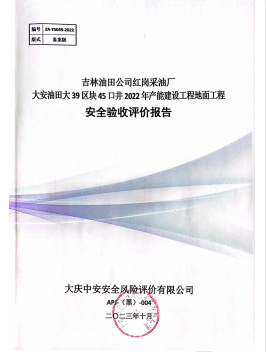 吉林油田公司紅崗采油廠大安油田大39區(qū)塊45口井2022年產能建設工程地面工程 安全驗收評價報告