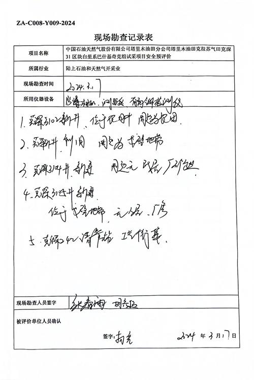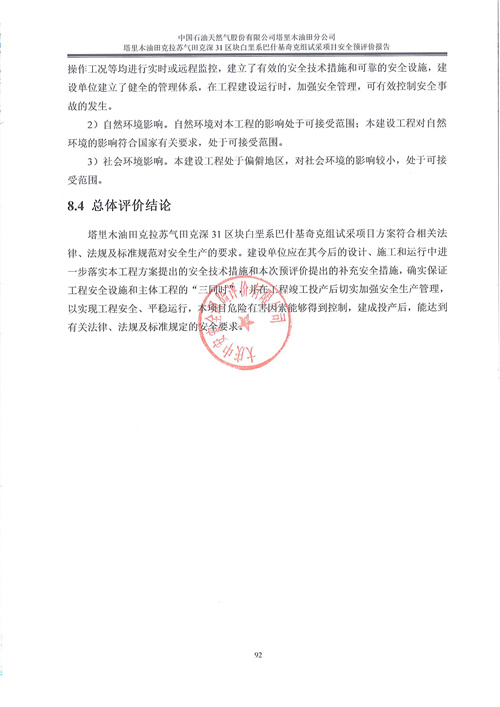 中國石油天然氣股份有限公司塔里木油田克拉蘇氣田克深31區塊白堊系巴什基奇克組試采項目安全預評價 |