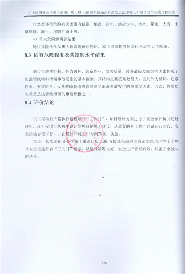 長慶油田分公司第十采油廠慶二聯-五蛟熱泵站輸油管道隱患治理等七個項目安全驗收評價報告 |