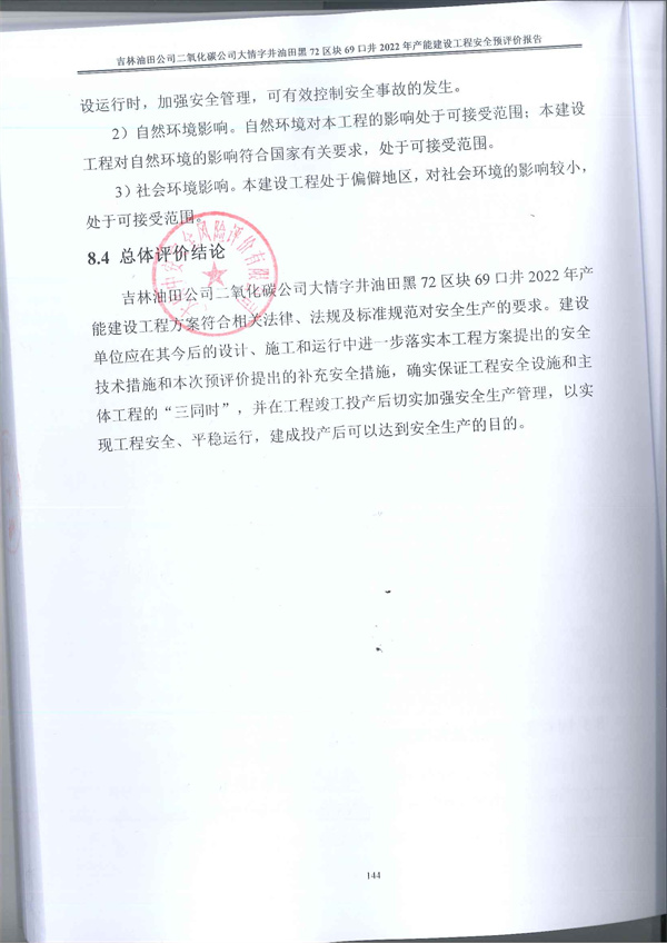 吉林油田二氧化碳開發公司大情字井油田黑72區塊69口井2022年產能建設工程安全預評價報告 |