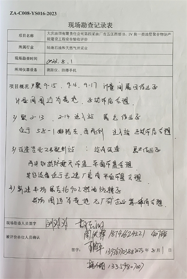 大慶油田有限責任公司第四采油廠杏五區西部II、IV塊一類油層聚合物驅產能建設工程安全驗收評價報告 |