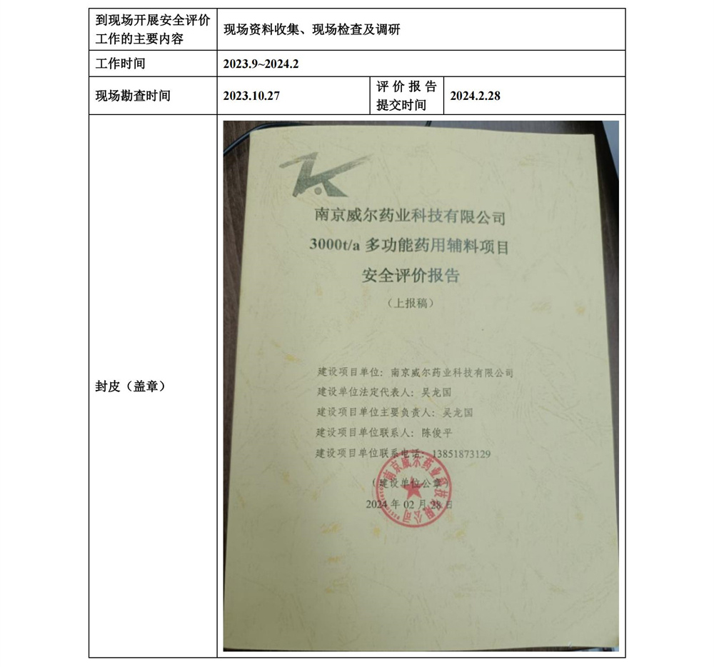南京威爾藥業科技有限公司3000t/a多功能藥用輔料項目安全評價報告
