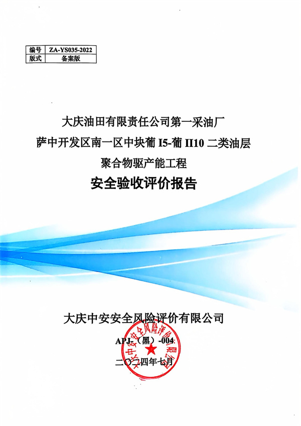 大慶油田有限責任公司第一采油廠薩中開發(fā)區(qū)南一區(qū)中塊葡I5-葡II10二類油層聚合物驅(qū)產(chǎn)能工程安全驗收評價報告
