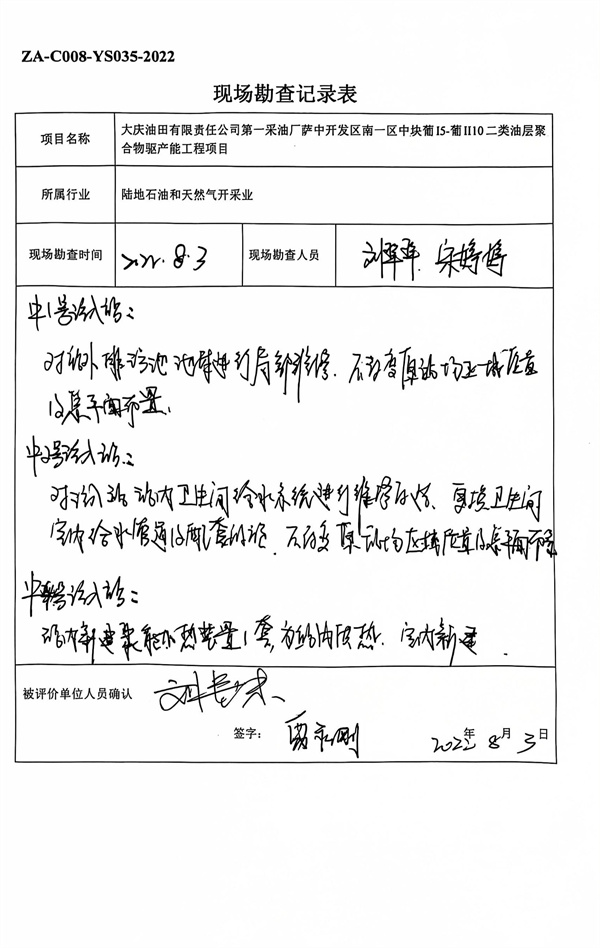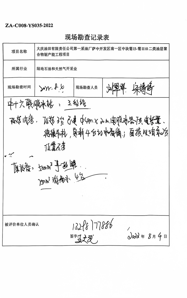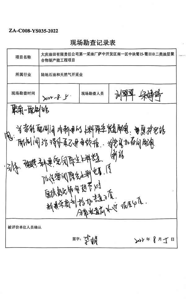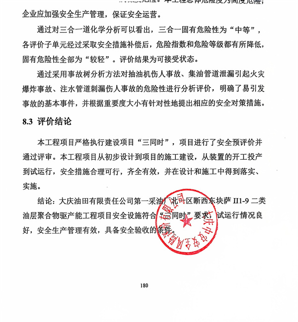 大慶油田有限責任公司第一采油廠薩中開發(fā)區(qū)南一區(qū)中塊葡I5-葡II10二類油層聚合物驅(qū)產(chǎn)能工程安全驗收評價 |
